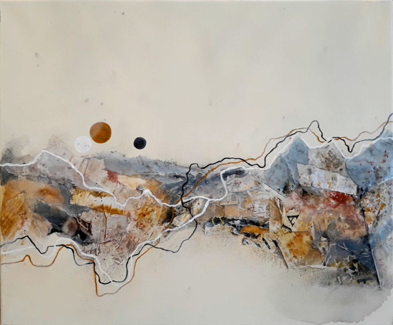 Die beiden Gipsplastiken „Dualität“ spielen auf eindrucksvolle Weise mit der Spannung zwischen Körperlichkeit und Auflösung. Die rohen, teils amorphen Oberflächen der Skulpturen wirken wie von inneren Kräften gezeichnet – zerfressen, durchbrochen, fragil. Diese „Verwundungen“ des Materials geben den Blick auf ein verborgenes Inneres frei: Drahtstrukturen, gespannte Fäden, leere Hohlräume. So entsteht ein Wechselspiel zwischen dem Sichtbaren und dem Unsichtbaren, zwischen Masse und Leere – ein formales wie inhaltliches Spiel mit der Idee von Dualität.